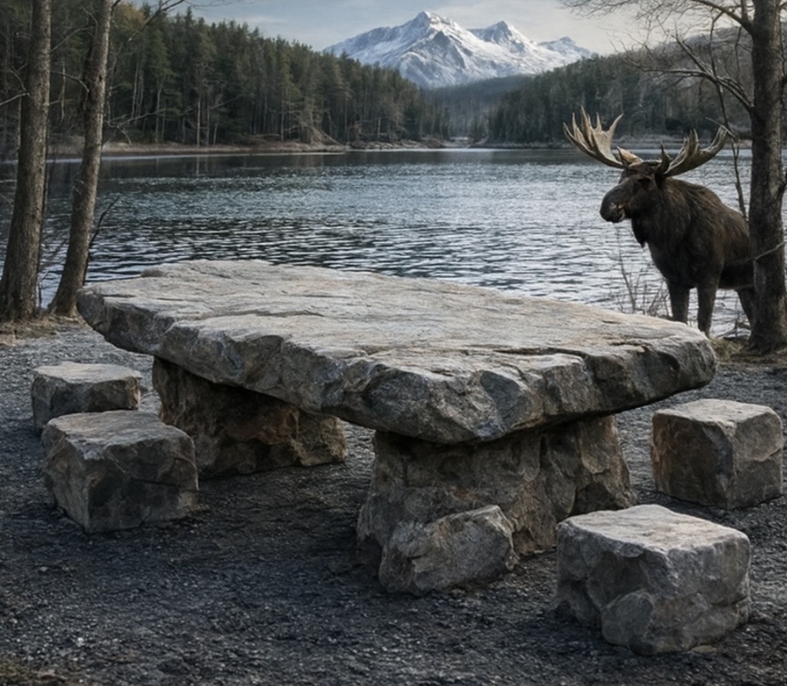 natuursteen uit de Noorse bergen. U kiest een tafel op basis van vorm, afmeting en karakter, elke steen is uniek en onherhaalbaar.